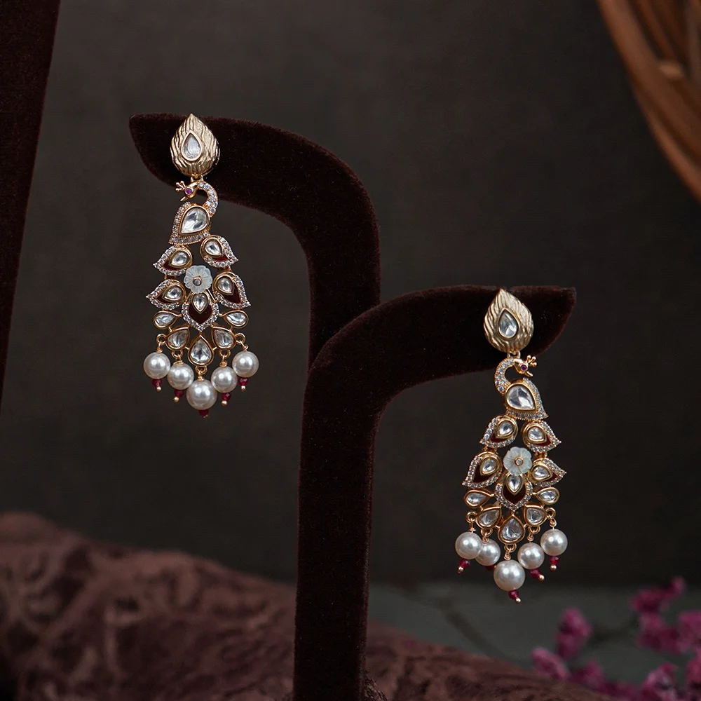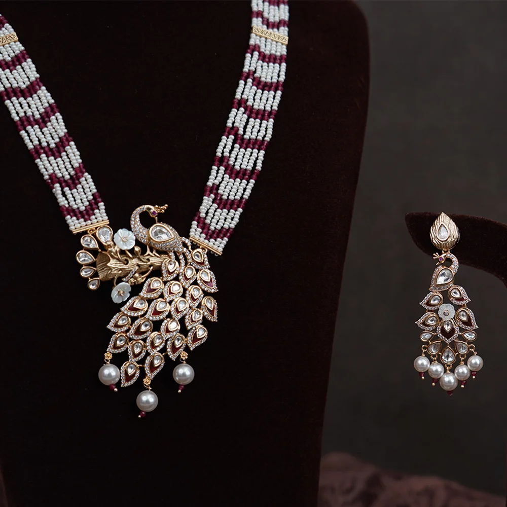 Traditional Peacock-Inspired Kundan & Pearl Set
