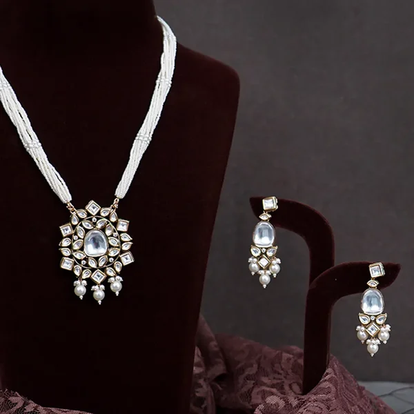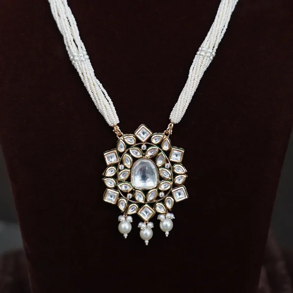 Moti Long Necklace with White Stones Modern Design