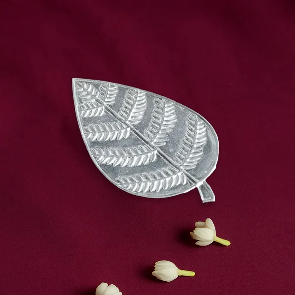 Handcrafted Silver Vidyach Paan Plate – Engraved Leaf Design