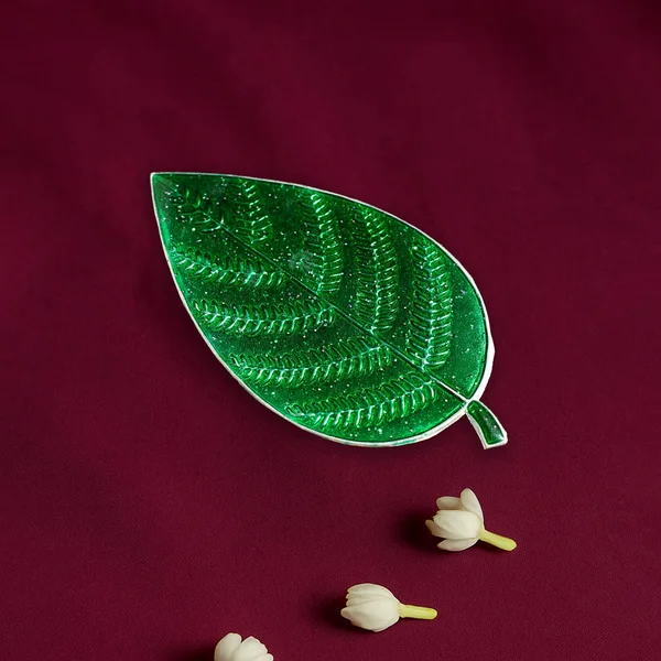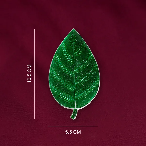 Add a vibrant touch to your rituals with this handcrafted silver Vidyach paan plate featuring a glossy green enamel finish and fern-style engraving. Perfectly sized at 10.5 cm × 5.5 cm, this elegant piece is ideal for pooja ceremonies, festive décor, or as a thoughtful gift symbolizing purity and tradition.