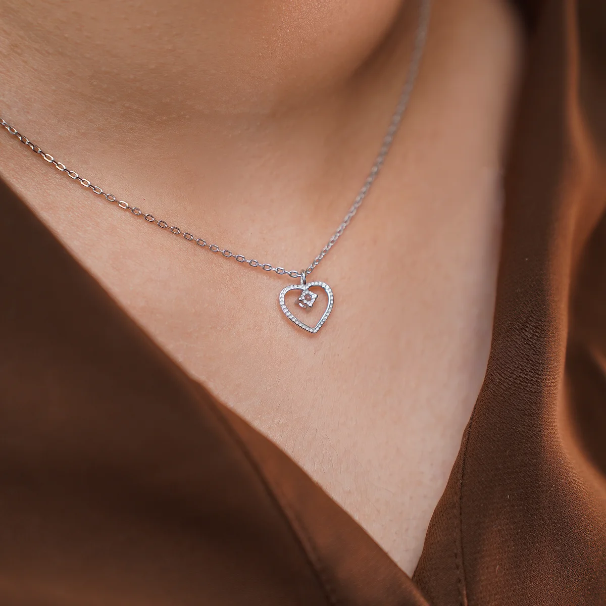 This delicate and romantic Pendant features a classic open-heart pendant suspended from a fine silver-tone cable chain. The pendant is crafted with a, open heart shape that is entirely with tiny, brilliant round-cut cubic gemstones for maximum sparkle. The design includes a subtle detail: a smaller, single round-cut stone is centrally placed at the very top curve of the heart, adding an extra focal point of light.